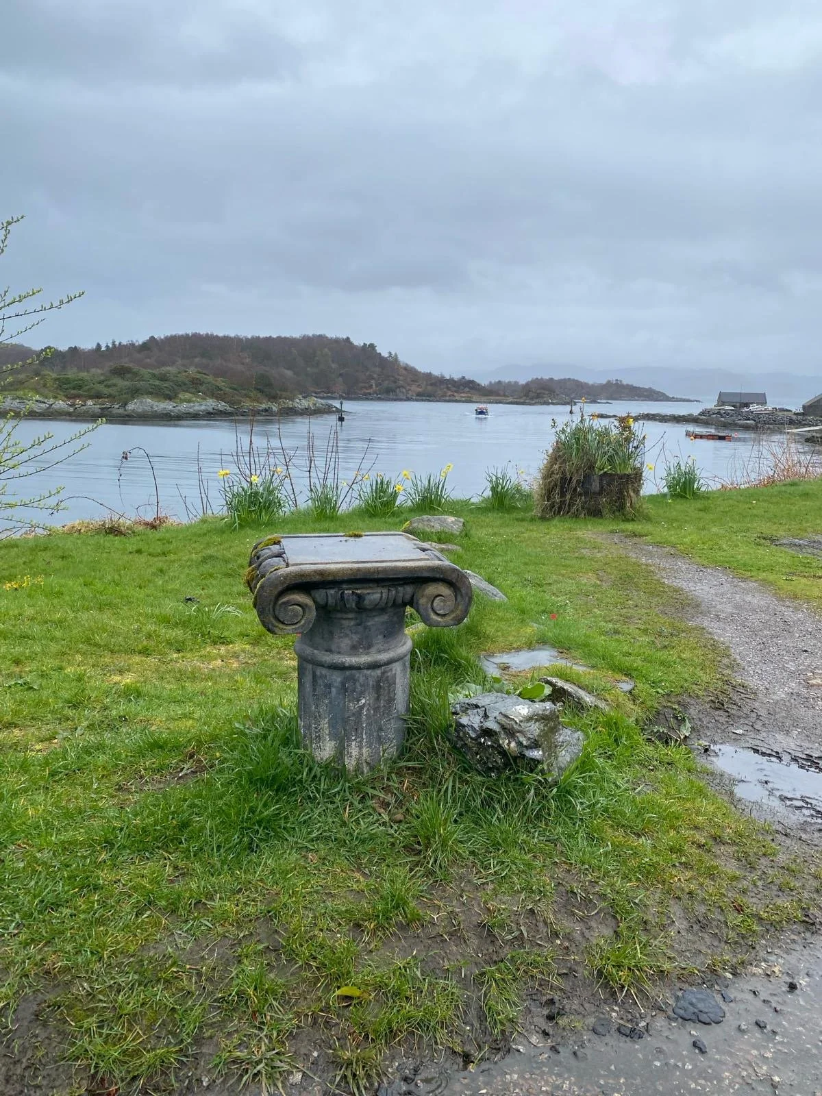 When the lectern was finished, a colleague popped their head around the workshop door, and said, “nice, very post-modern; it looks like an Ionic column”. And then I remembered being in Tarbert with friends, a month earlier, and seeing a half-comic, half-mysterious image; only the top-most portion of an Ionic column, placed next to the bay, positioned to look like, maybe, the rest of the thing was buried. A glimpse of an imaginary ruin.